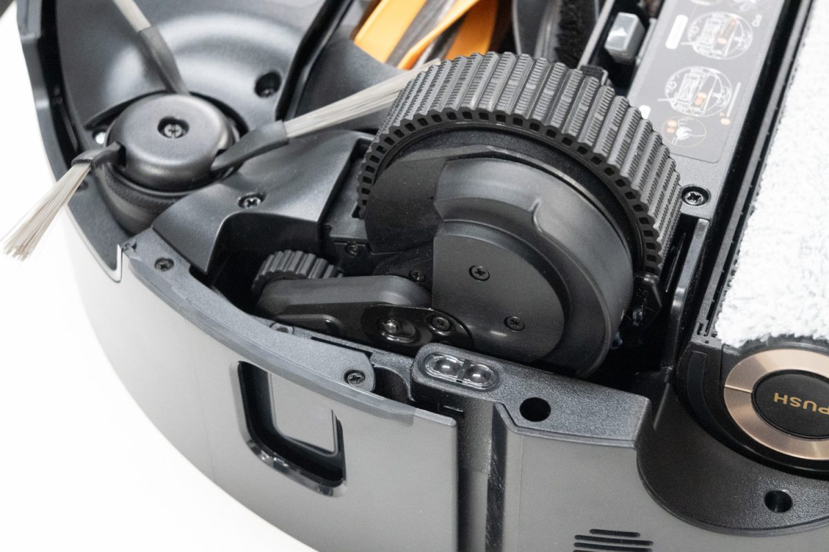 ゴミの吸引については、毛の絡みを防止する「HyperStream 絡まり防止デュオブラシ」を搭載するほか、サイドブラシが伸びる「SideReach」に対応。毛の長いカーペットを吸引する際に濡らしたモップが触れることのないよう、モップをカバーで自動的に覆う「AutoSealローラーガード」も備える。