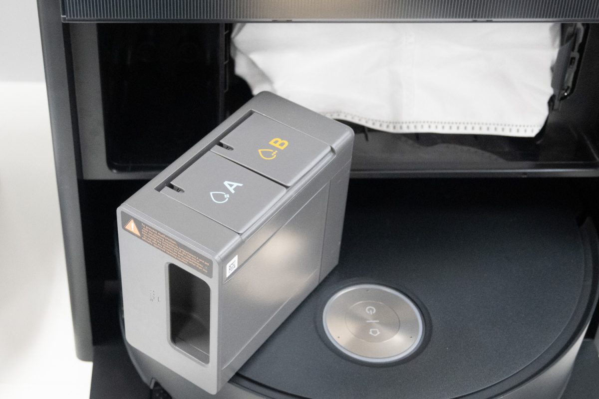 全自動のベースステーションでは、モップの温水洗浄・温風乾燥、ダストバッグへのゴミ収集(最大100日分)、汚水の回収・清水の補充、本体の充電、洗剤(2種類)の自動補充といったことがまとめて行える。モップの洗浄は100度の熱湯を使うことで油汚れまで落とし、滅菌や匂いの低減も実現しているとアピール。ステーションは横を覆うデザインにすることで、洗浄中にモップに触ることができないよう配慮している。さらにダストバッグ内は50度の熱風乾燥により、収集したゴミの匂い発生を抑える仕組みも搭載。