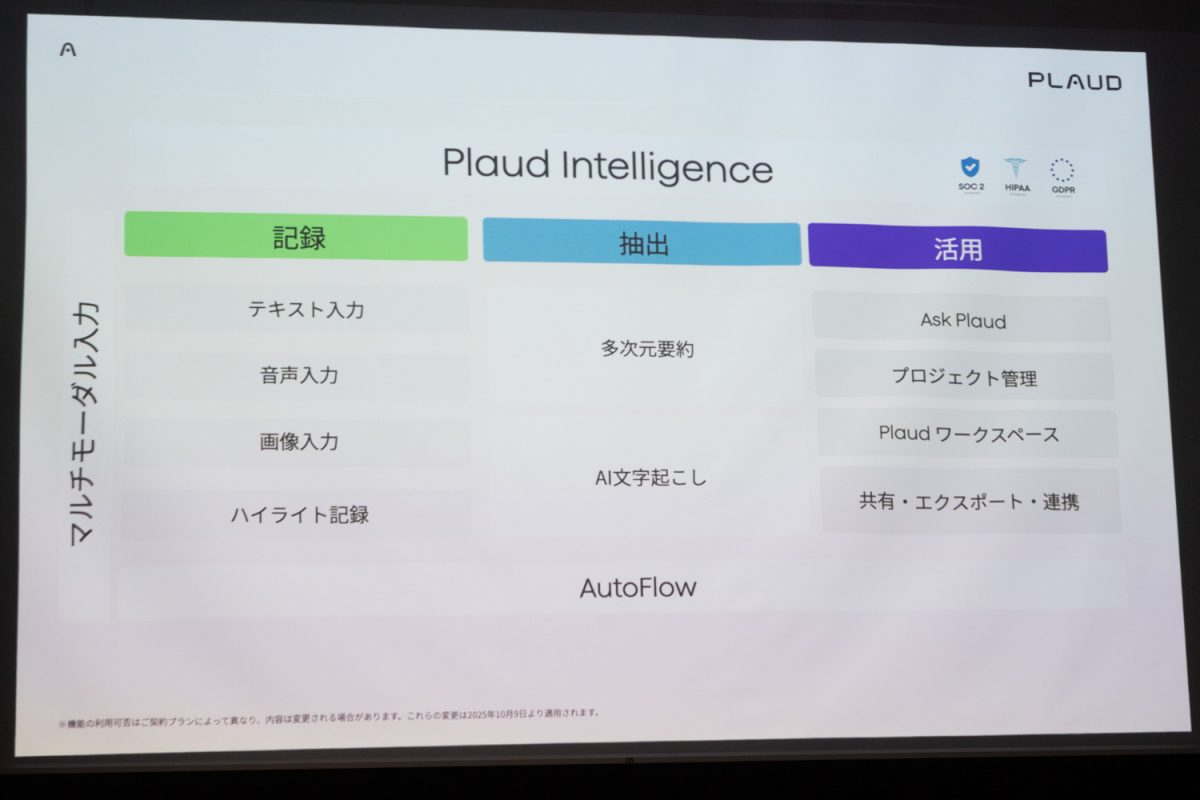 Plaud製品には記録/抽出/活用の3つの大きな軸があるが、これまで「音声を取り込むことに従来フォーカスしていた」と発表に合わせて開催されたイベントにおいて、同社セールスディレクターの鈴木直幸氏が説明。「もっと情報が必要なんじゃないか」ということで、新バージョンでは「多くの情報を取り込めるような機能」を搭載したそうだ。