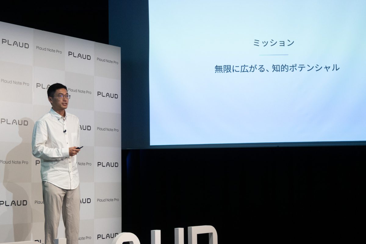 発表会の冒頭に登壇したCEOのNathan Xu(ネイサン・シュー)氏は、新たに企業としてのミッションを「無限に広がる、知的ポテンシャル」に定めたことをアナウンス。人をAIに置き換えるのではなく、「AIのソリューションを構築し、それを人間中心にする」ことを目指していくという。全てのPlaud製品はこの理念に基づいて展開しており、それによって「人々の成功を支援したい」とした。