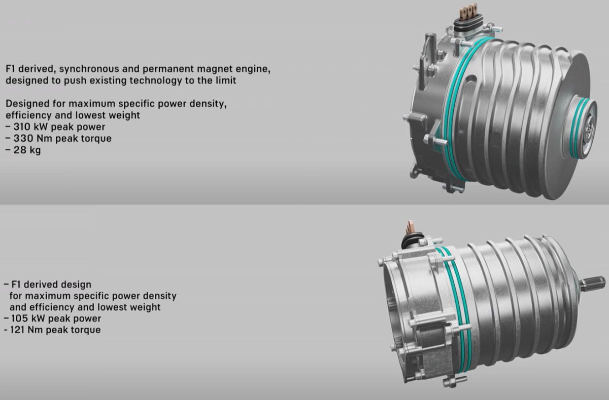 なお、エレットリカは4輪それぞれに自社で設計・製造し、磁極の方向を最適化することによって特定の方向への磁場強度を最大化するハルバッハ配列ローターを備えた「電気エンジン」を搭載し、AWDで走行が可能だが、フロント側を切り離し、RWD走行とすることで電費効率を高めるられる。