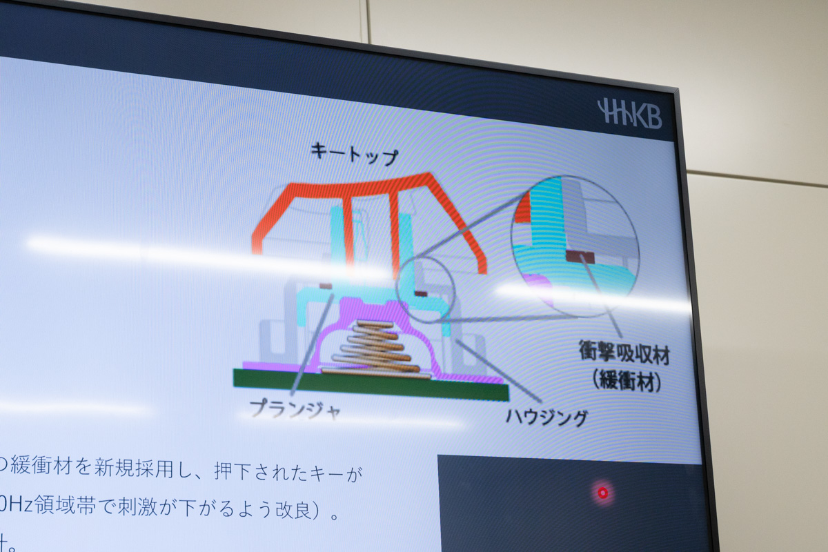 なおType-Sとは、「高速タイピング性(Speed)」と「静粛性(Silent)」という意味。キー内部に衝撃吸収材としてPORON素材のOリングを入れることで、キーが持ち上がった際のノイズ(2.5〜5kHz