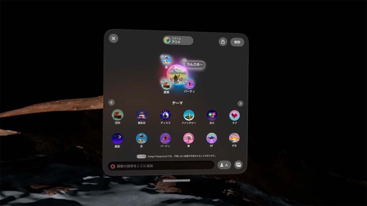 新しいM5チップではApple Vision ProのAIタスクの処理性能が向上したと言われている。Apple Intelligenceの「Image Playground」アプリによる画像生成などを試すと、確かにレスポンスは速くなったようにも感じる。2Dの静止画像からApple Vision Proによる立体視が楽しめる「空間シーン」の生成もスムーズだ。