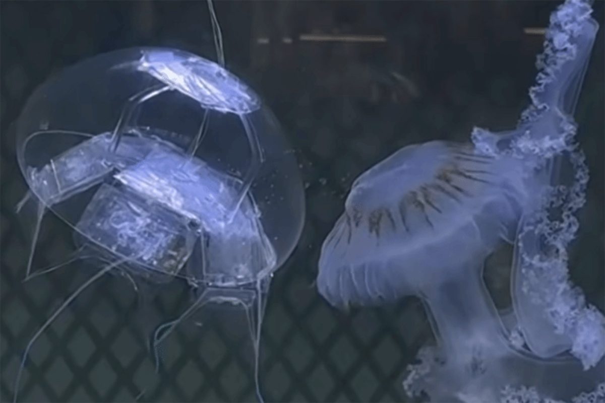クラゲの体にあたる部分はハイドロゲル素材で作られており、直径約13cm、重さ約54gの傘型の本体だけでなく、細長い触手まで備えている。また、静電油圧アクチュエーターが本物のクラゲのリズミカルな筋肉の収縮・弛緩動作を再現し、水中での自力での移動を可能にしている。このアクチュエータは生体の神経信号によく似た働きをするため、従来の推進システムに特有の騒音や振動がなく、滑らかで有機的な動きを実現しているとのことだ。