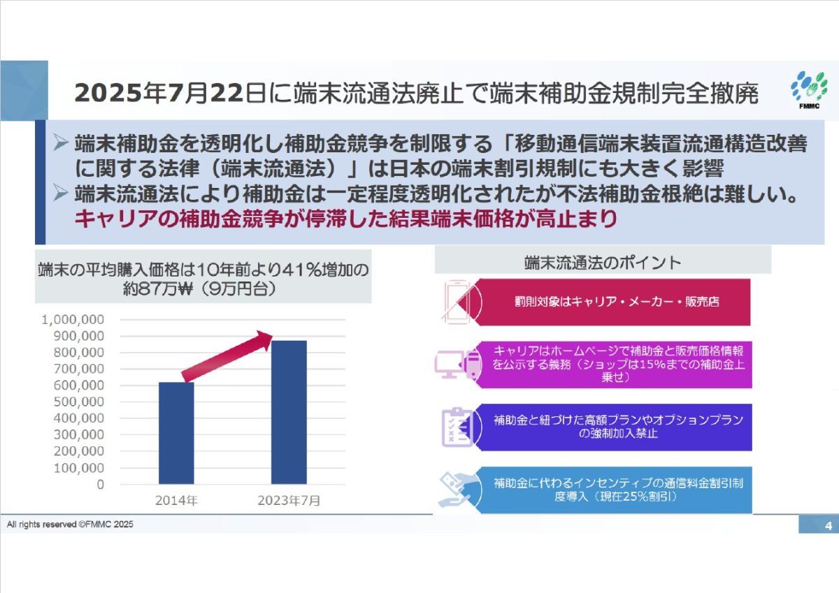 それだけに韓国でもかつて、携帯電話会社が補助金を出してのスマートフォン大幅値引き合戦が激化。これを行政が問題視した結果、2014年に「移動通信端末装置流通構造改善に関する法律」(端末流通法)が施行され大幅値引きを厳しく規制した経緯があり、日本の電気通信事業法改正も韓国の動きを参考にした部分が大きい。