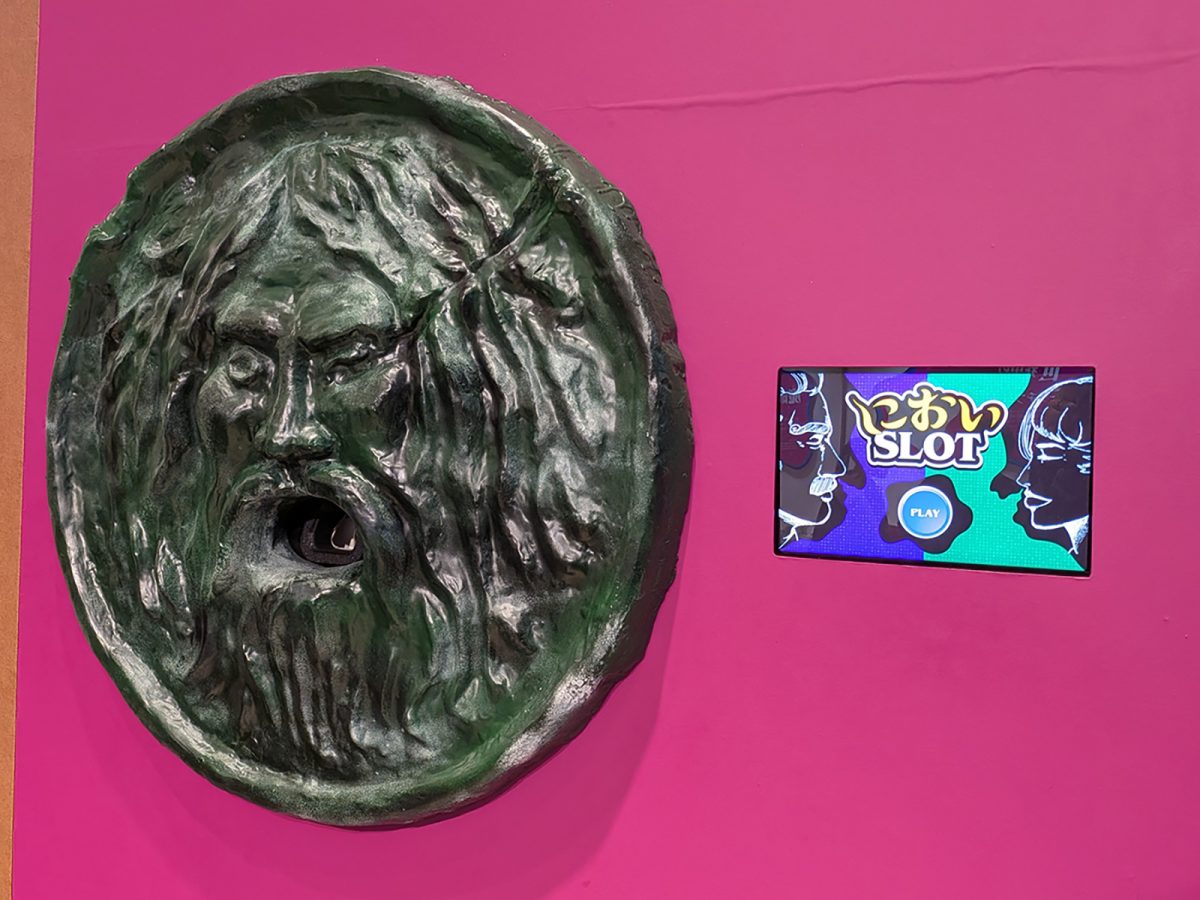 このNOS-DX1000のデバイスとしての特徴を活かして、「におい展PLUS+」の会場にはイタリアの「真実の口」を模したオブジェによる「においクイズ」が展示されている。今回の東京スカイツリータウンでの展示から不快な臭いの提示に特化した “新型” が登場したこともあって、若年層の来場者を中心に大好評だった。筆者も体験して嗅いだ「錆びた金属のにおい」や「足のにおい」は、思わず苦笑してしまうほど強烈だった。