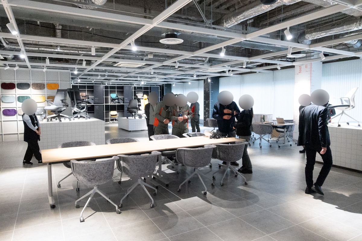 今回のリニューアルは主にチェア工場で行われたもの。プロジェクトは2023年末に発足され、現場の若手エンジニアや本社のインテリアデザイナーなど約20名が集まり、ボトムアップで進行。従業員へのアンケートやワークショップを重ね、最終的なコンセプトは「共創」とした。なお、キャビネット工場は「工場のメンバーで作る」というコンセプトのもと、また別のプロジェクトが動いているそうだ。