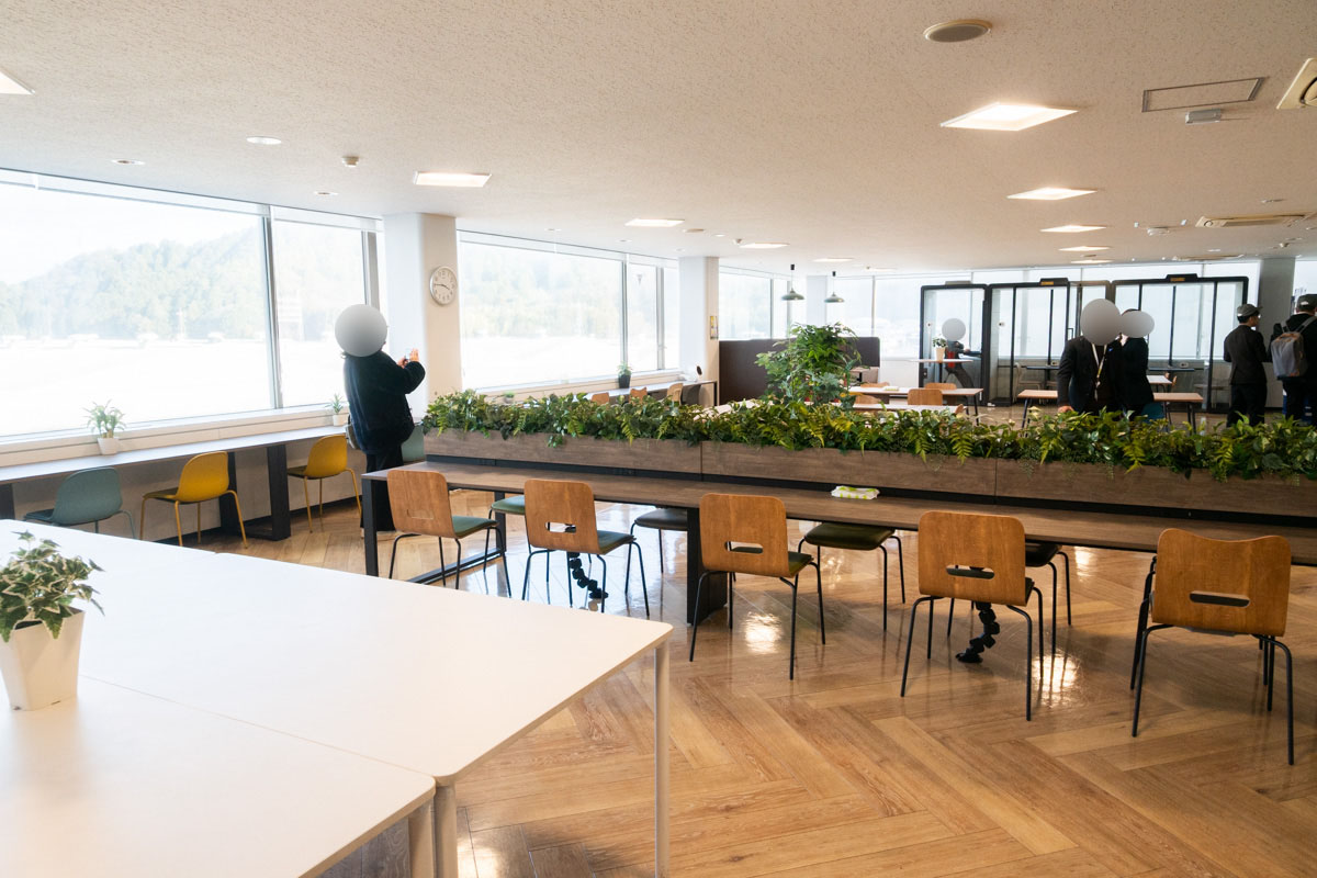 4階の食堂エリアも刷新され、「休憩中は一人になりたい」という声に応え、植栽を囲む席やカウンター席を新設。これまでは座席数が不足していたそうで、会議室の壁を取り去ることで座席を確保し、フロア全てが食堂用になった。