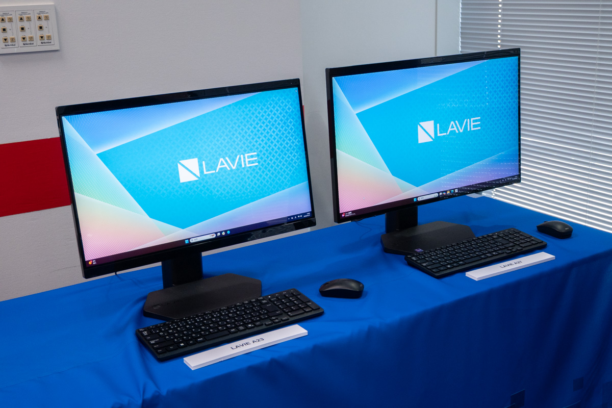 LAVIE A27は27型、LAVIE A23は23.8型のIPS液晶を備えた一体型デスクトップPC。既存モデルと同様、HDMI入力端子やDVDドライブを備えている。テンキー付きワイヤレスキーボードも付属する。