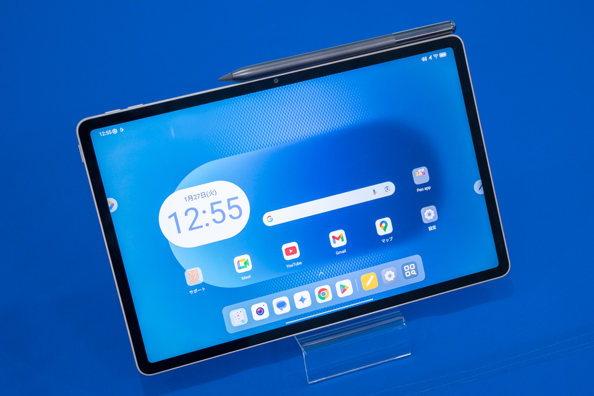 ディスプレイは12.1型で、解像度は2.5K(2560×1600)、リフレッシュレートは90Hz、最大輝度は800nits。プロセッサーはMediaTek Dimensity 6400、メモリは12GB、ストレージは約256GBとなる。microSDカードにも対応。