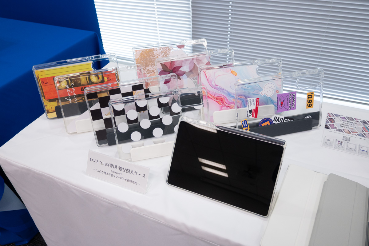 なお、caseplayとコラボした専用ケースの無料クーポンが付属。1つだけ好きなデザインのものを貰うことができるようになっている。ほか、別売オプションとしてスタンドカバー付きキーボードを用意する。