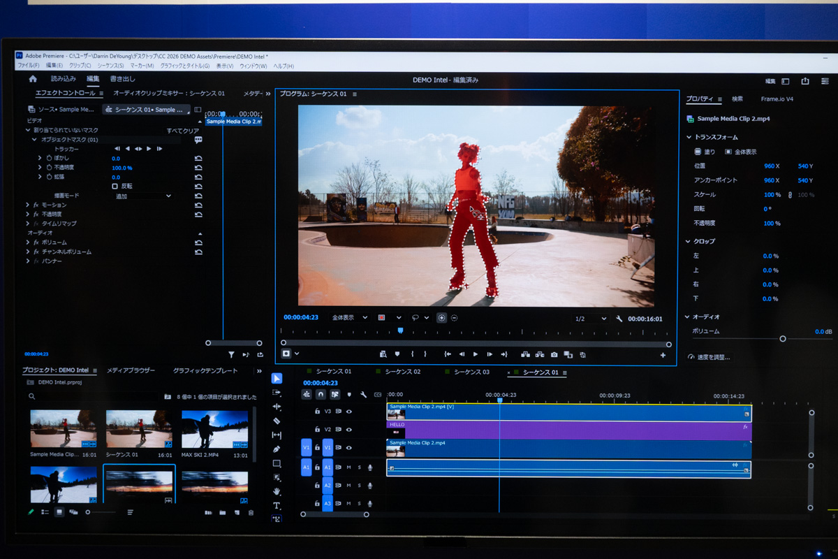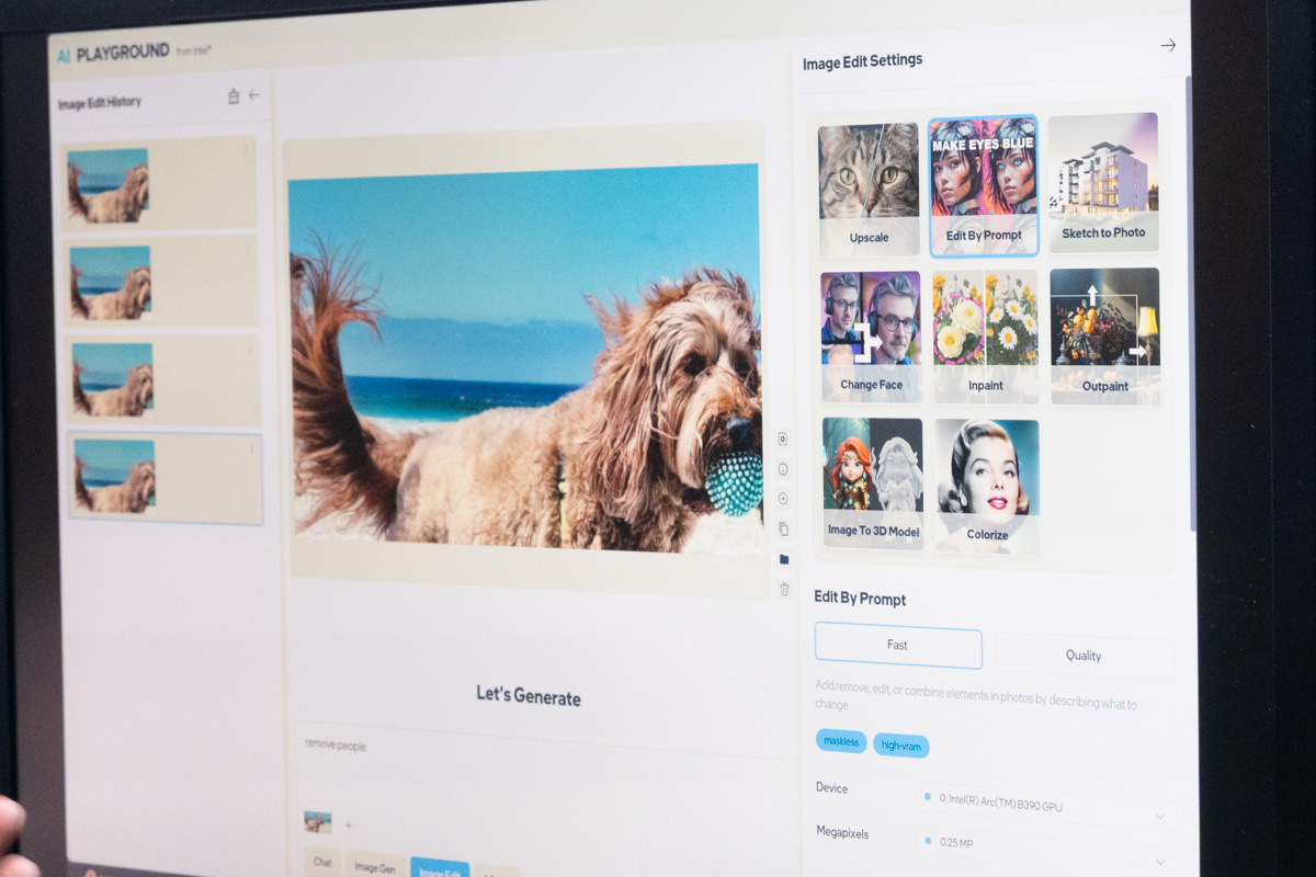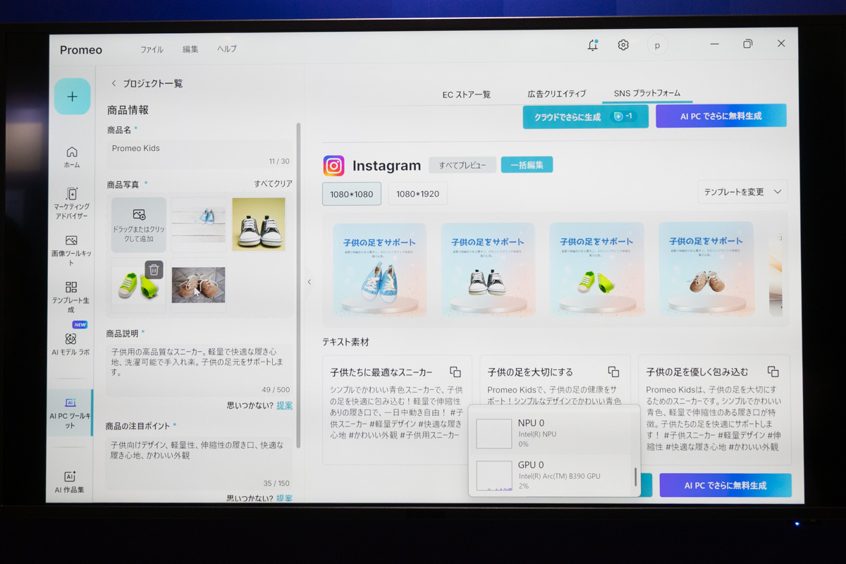 ほか、インテルが開発するローカルで質問や画像生成ができる「Intel AI Playground」もアピール。アドビの動画編集ソフト「Premiere Pro」やサイバーリンクのAI広告作成ソフト「Promeo」、K-kaleidoの会議ログ&翻訳ソフト「スピーチコネクト」といったパートナー企業製品も出展し、多くの来場者で賑わった。