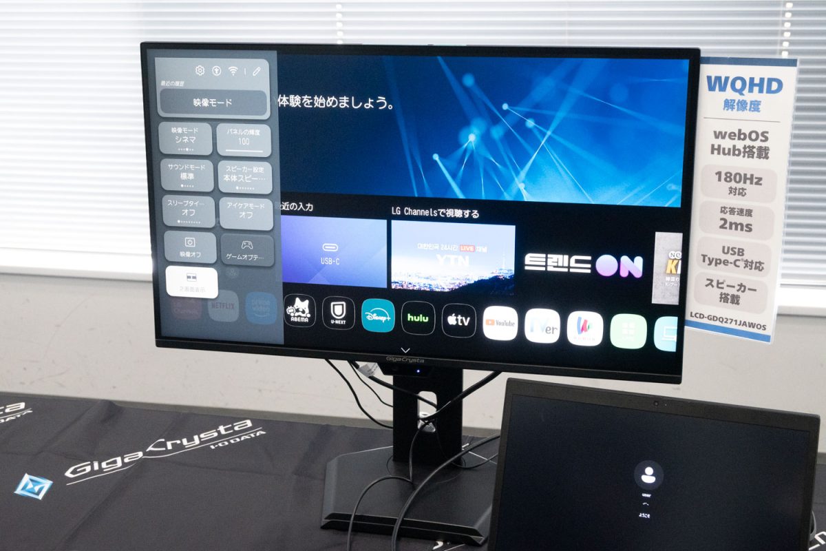 LCD-GDQ271JAWOSは、LGエレクトロニクスの「webOS Hub」を搭載することで、モニター単体で映像ストリーミングサービスが利用できる27型モデル。GigaCrysta Sシリーズの下位ラインである、GigaCrystaシリーズからラインナップされる。ゲーミングモニターでありながら、チューナーレステレビのような使い方が可能だ。
