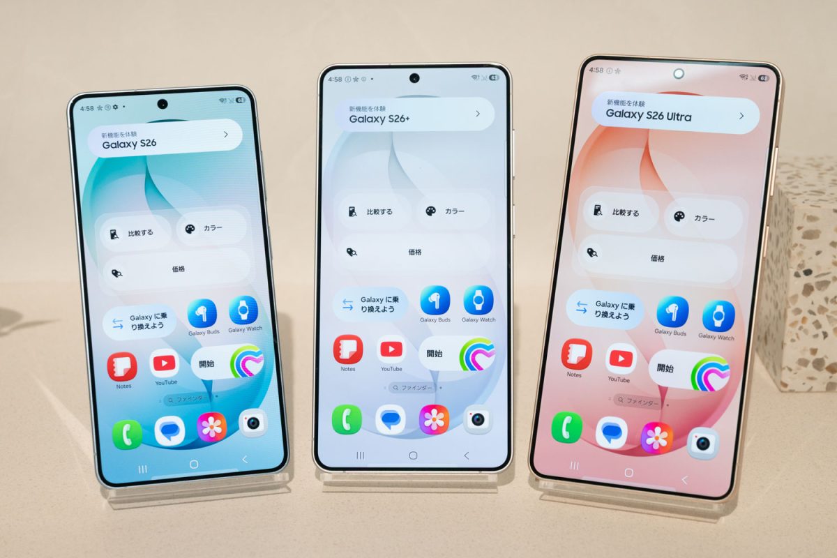 左から、Galaxy S26、Galaxy S26+、Galaxy S26 Ultra