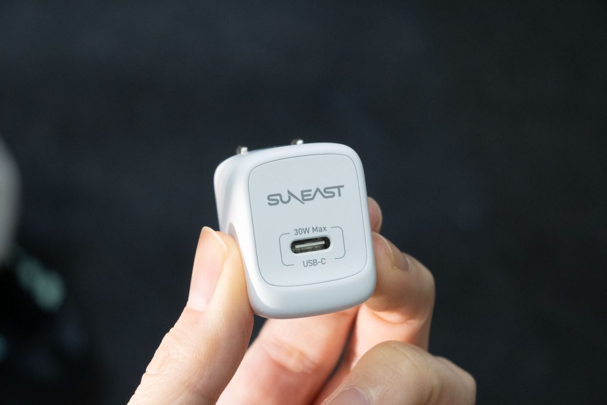 SUNEASTのブースには、その他にも新製品や参考出品などが展示。2月18日に発売されたばかりとなるPD対応の小型USB充電器「30W Type-C GaN Charger」(1,980円・税込)も早速並べられていた。