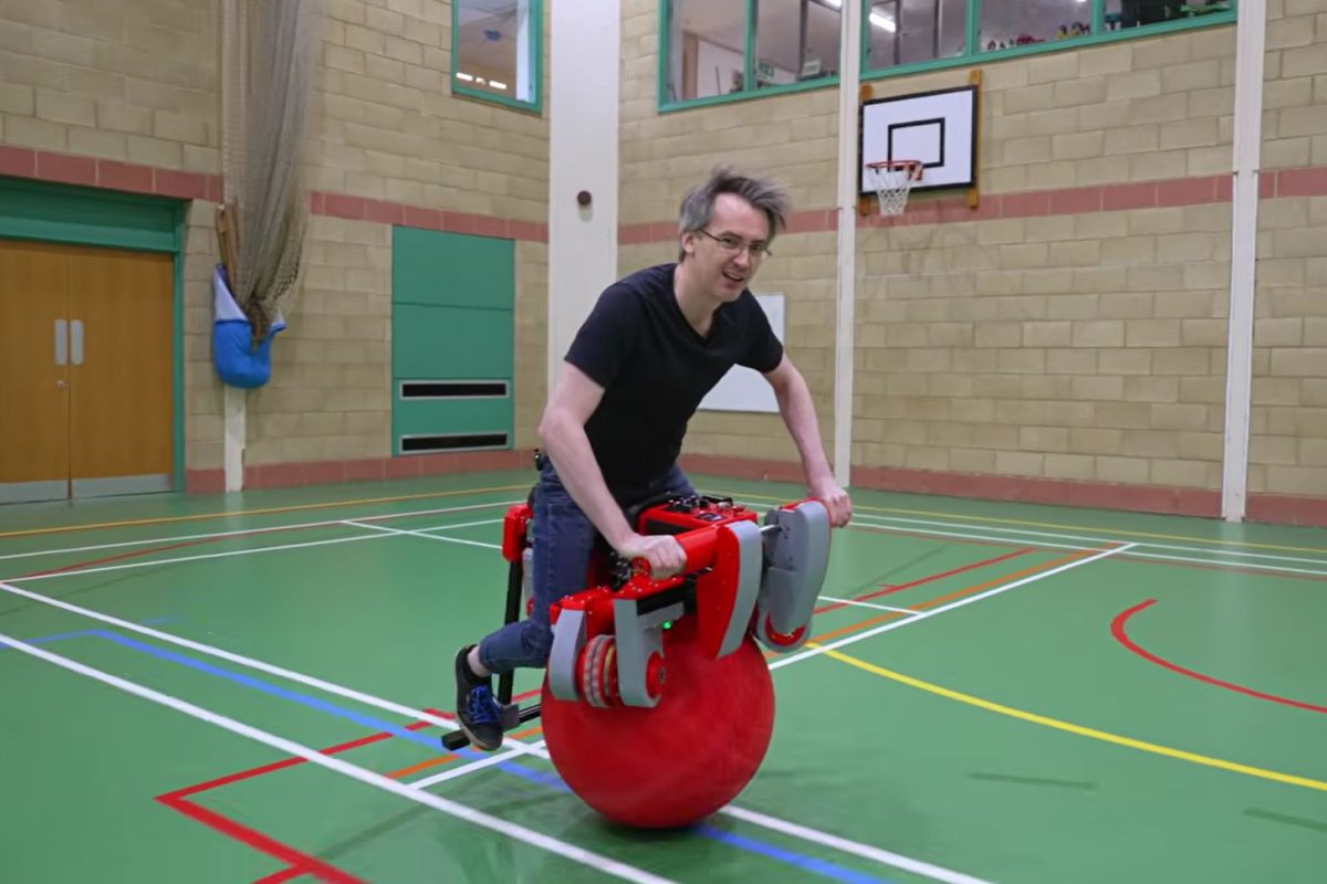 奇想天外な乗り物を考案しては実際に乗って見せるYouTuber、ジェームズ・ブルトン氏が、昨年初頭に製作したバランスボールバイクからボールをひとつ取り除き、一輪(一球)バイクに進化させた。