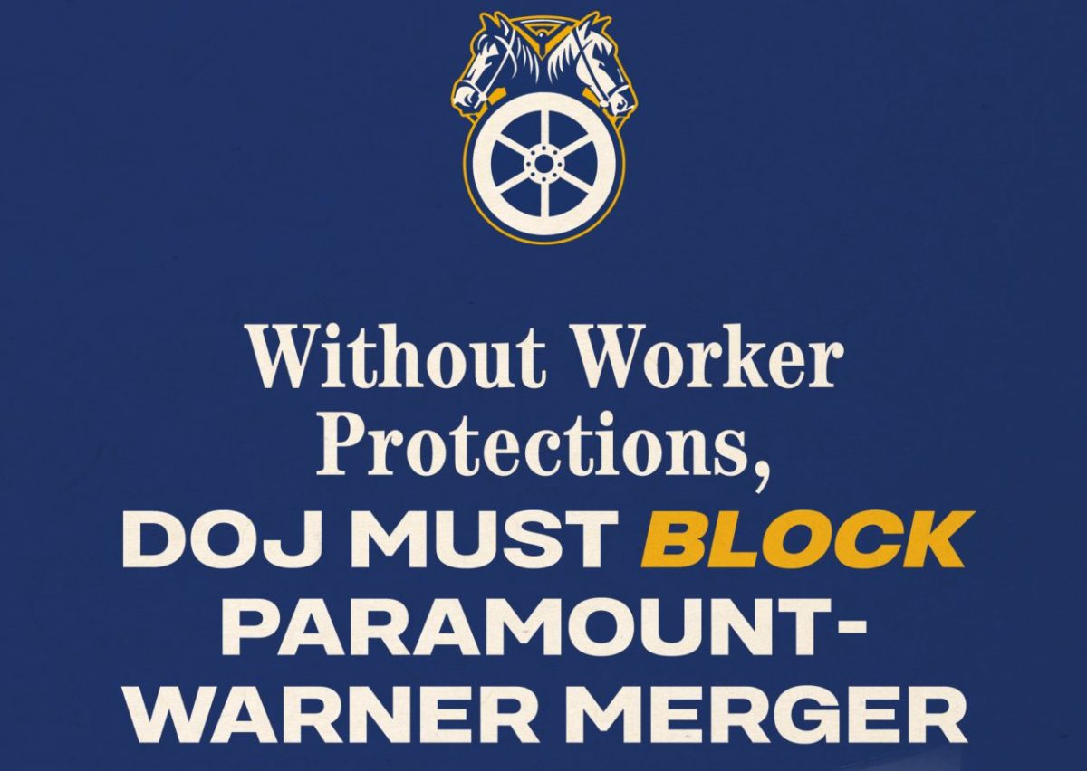 そして「企業が権力を集中させたときに何が起きるかは、これまでにも見てきた。要するに雇用が失われ、制作者が米国コミュニティから離れ、労働者が代償を払うことになる。司法省には、競争を排除し労働者家庭に害を及ぼす取引を阻止する責任がある。パラマウントとワーナー・ブラザースが国内制作と労働基準に対し、強制力ある保護を保証できない限り、この合併は進めるべきではない」と主張している。