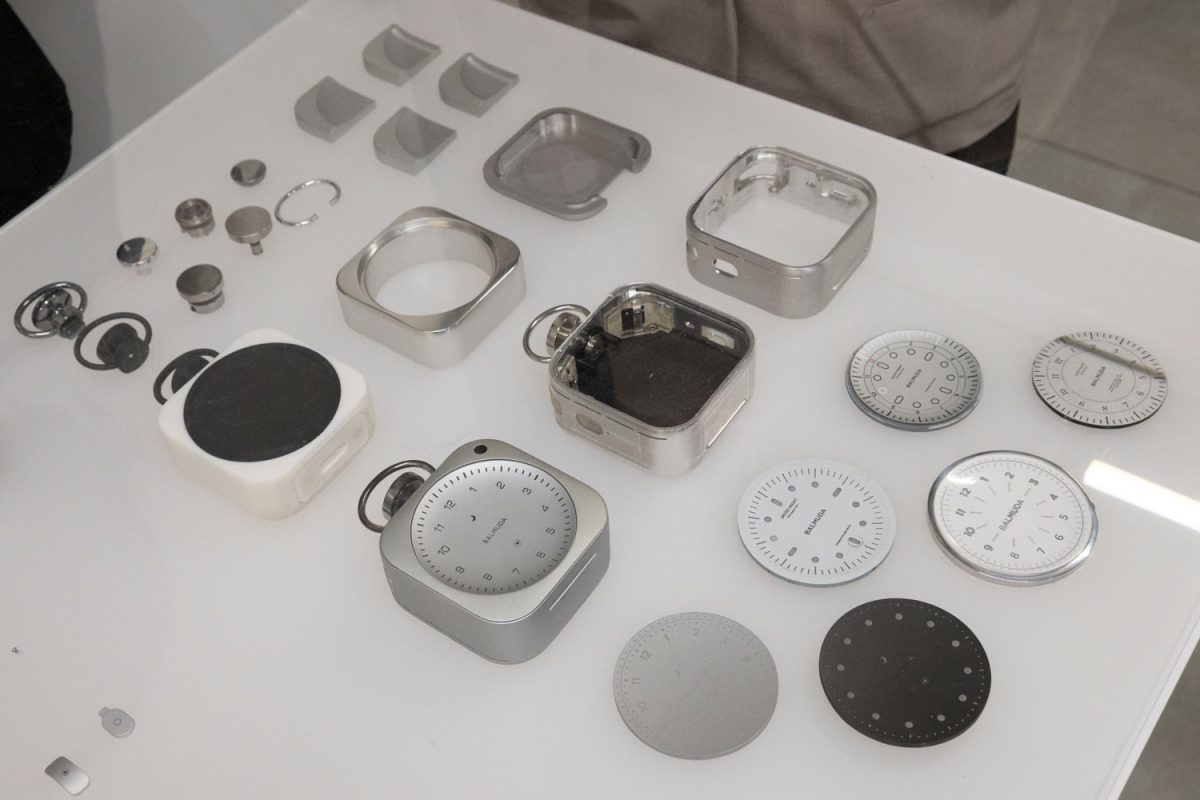 本体はアルミニウムの削り出しによって作られており、表面はテクスチャーブラストやアノダイズ処理などを施している。音量調整やアラームなどの操作に使う上部のクラウンにはステンレススチールを採用。文字盤部分はポリカーボネートでありながらも、アルミニウムの本体と素材の違いが目立たないよう、塗装にこだわっているそうだ。