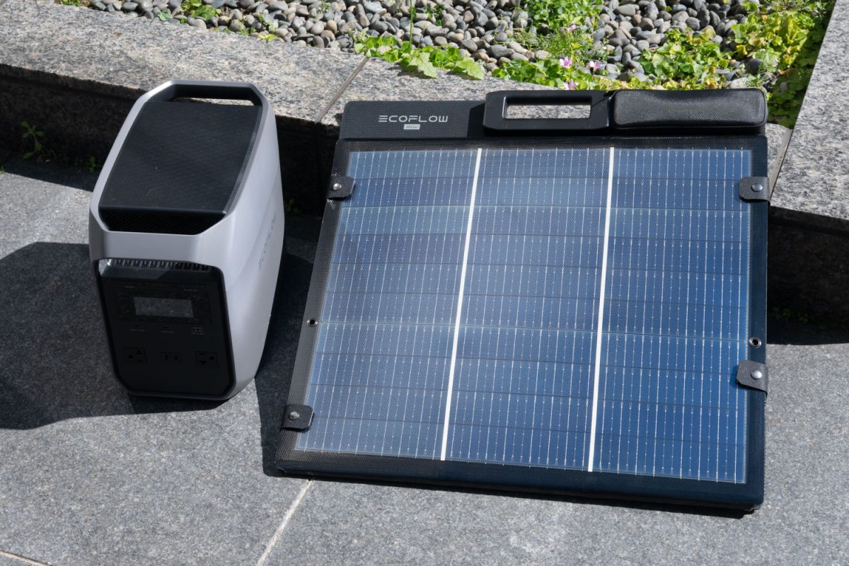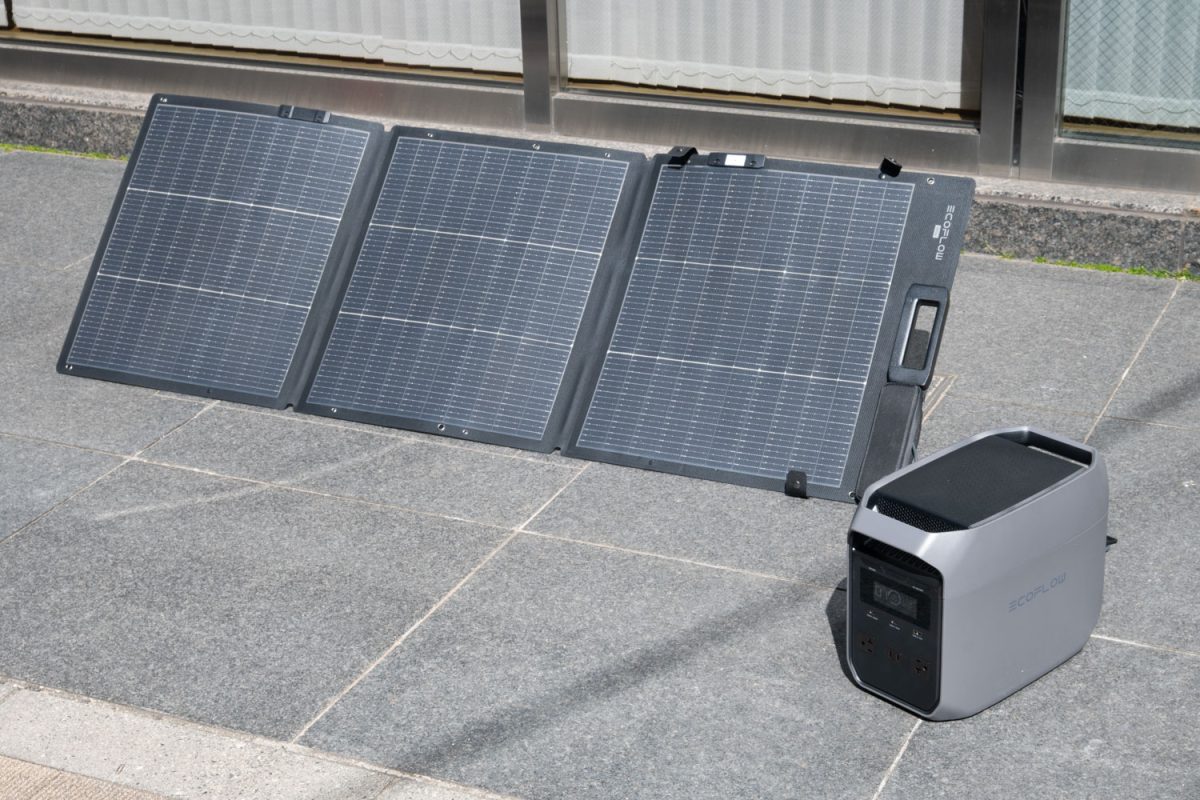 災害時やアウトドアにおける充電手段を考えるなら、ソーラーパネルと組み合わせるのもおすすめだ。今回は最大160W出力に対応する軽量モデル「160W軽量両面 ソーラーパネル」を試してみた。なお、DELTA 3 ClassicはACとソーラーパネルに加えて、車用のオルタネーターチャージャーにも対応する。