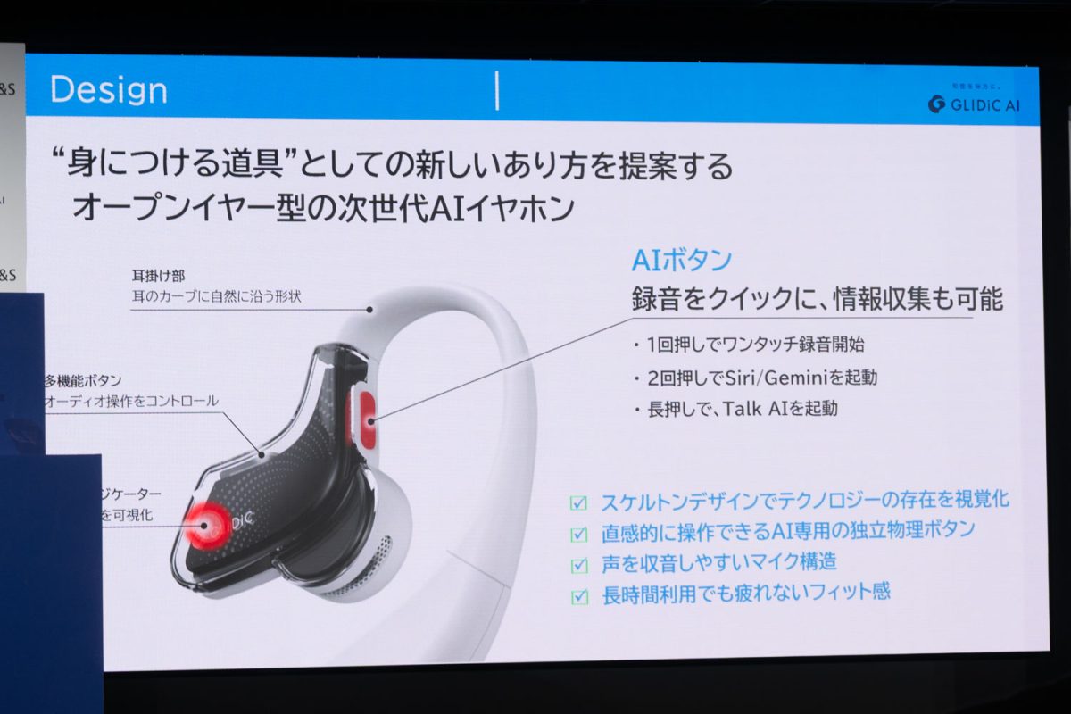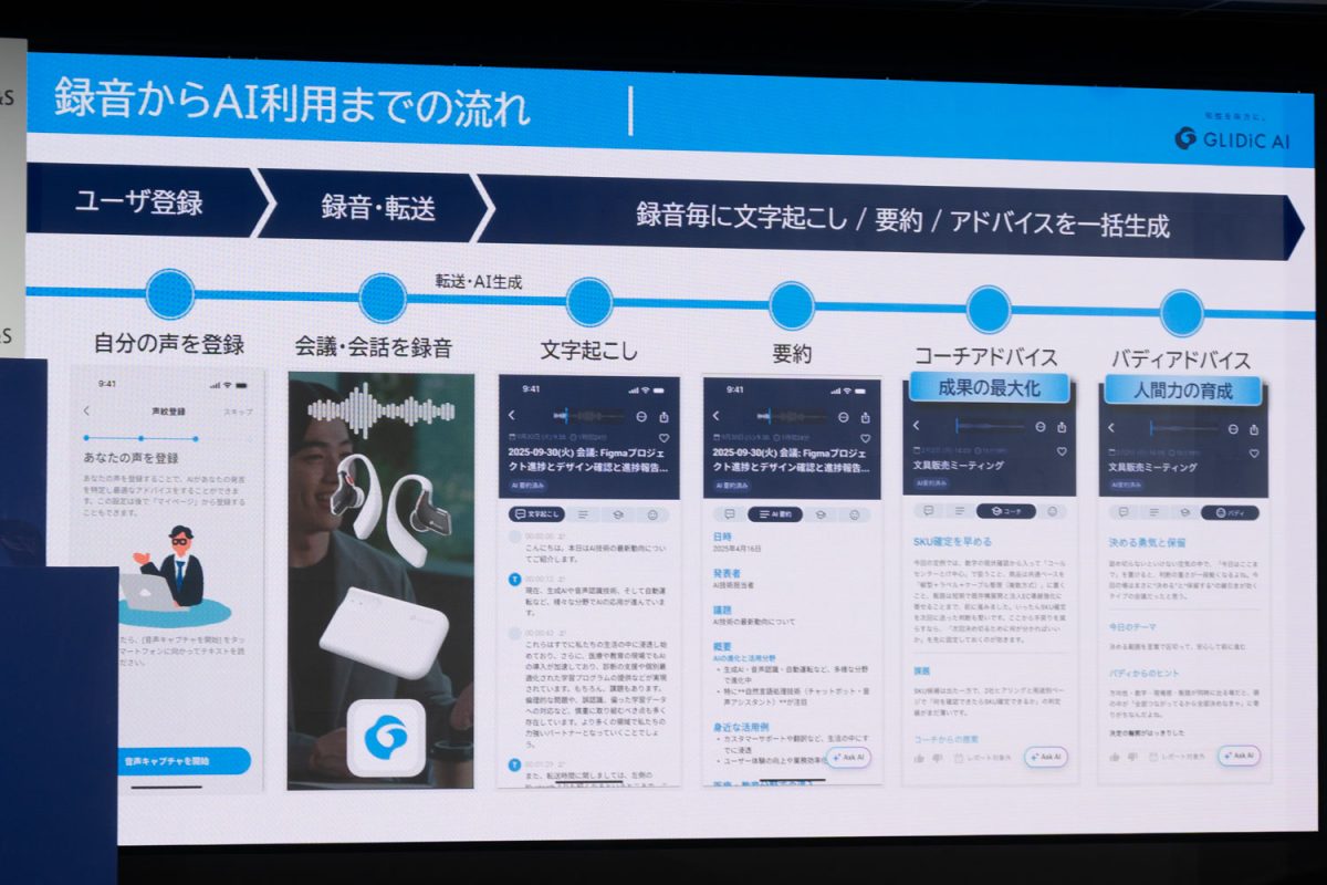 録音・文字起こしだけじゃない“AIイヤホン”。アドバイスや振り返りできる「GLIDiC AI +u Buds」発表