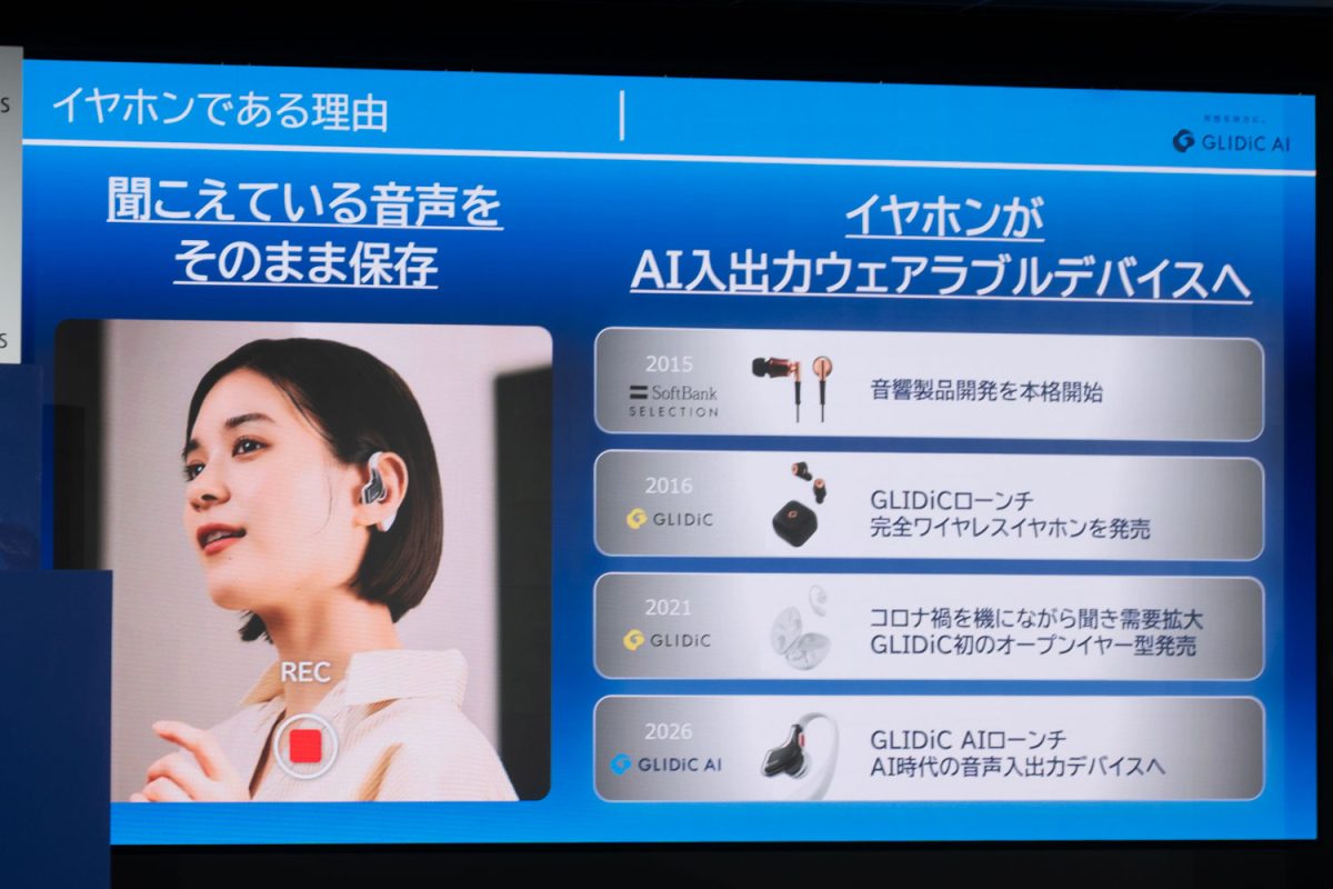 2015年から音響製品の開発に乗り出してきたモバイルのためのオーディオブランド「GLIDiC」が、AIオーディオブランドとして進化。本製品を皮切りに「AIをより身近に感じて頂ける製品開発に邁進していく」としている。