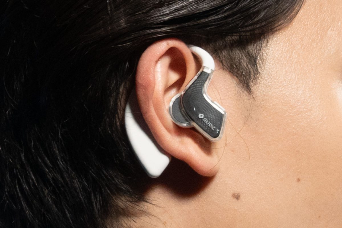 イヤホンとしても十分な性能を目指しており、本体は “身につける道具” として長時間でも疲れにくいオープンイヤー型を採用する。スケルトンデザインによってテクノロジーの存在感を強調した。