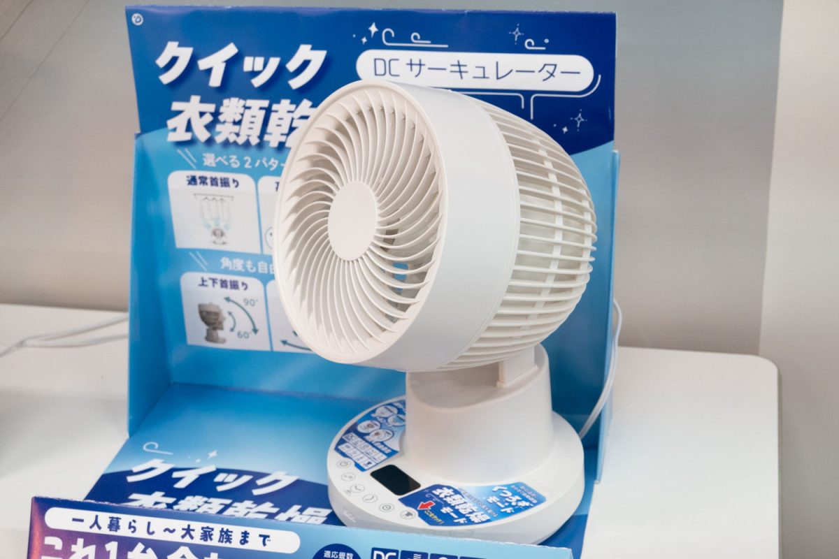 発表会では、2倍速の首振りによって滞留した空気を素早く循環できる「クイック衣類乾燥 DCサーキュレーター」も発表。12,800円(税込)で4月下旬の発売を予定する。上下最大90度/左右最大120度の首振りと12段階の風量により、風を面でまんべんなく当てることで衣類を早く乾かせるそうだ。