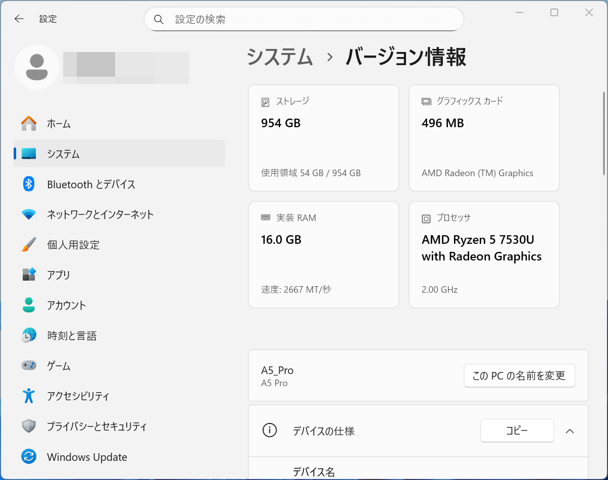 小さなPCというと性能面が気になるが、A5 Proはそこも現実的なバランスでまとまっている。AMD Ryzen 5 7530Uを搭載し、Webブラウズ、文書作成、オンライン会議、表計算といった日常的なPC作業をこなすには十分な構成だ。