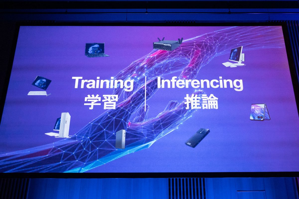 また、続いて登壇したNECパーソナルコンピュータの代表取締役 執行役員社長である檜山太郎氏は、これからのAIはデータセンターで行う “学習” ではなく、エッジ側の端末で行う “推論” がトレンドになっていくと説明。同社はデバイスを提供する企業として、AIをインフラとして広げていけるよう、「ユーザーに合わせていろいろなものを選択できるよう」ラインナップ拡充を図りたいとした。
