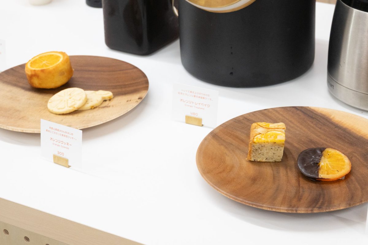 カフェメニューはオレンジにちなんだものが多い。フードメニューでは、「オレンジトレイベイク」「オレンジパウンドケーキ」「オレンジクッキー」「オレンジチョコレート」が提供される。