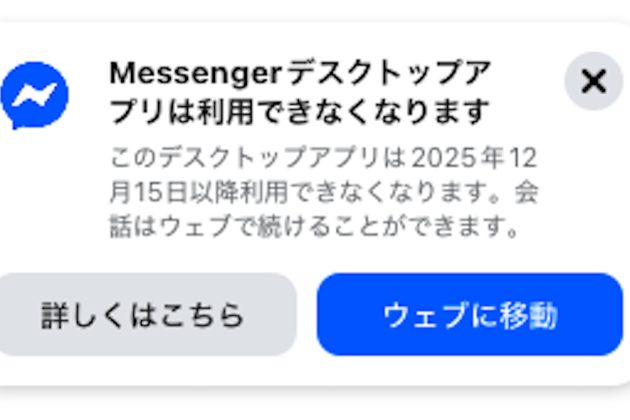 Meta、MessengerのWindows・Mac版アプリを12月15日で終了